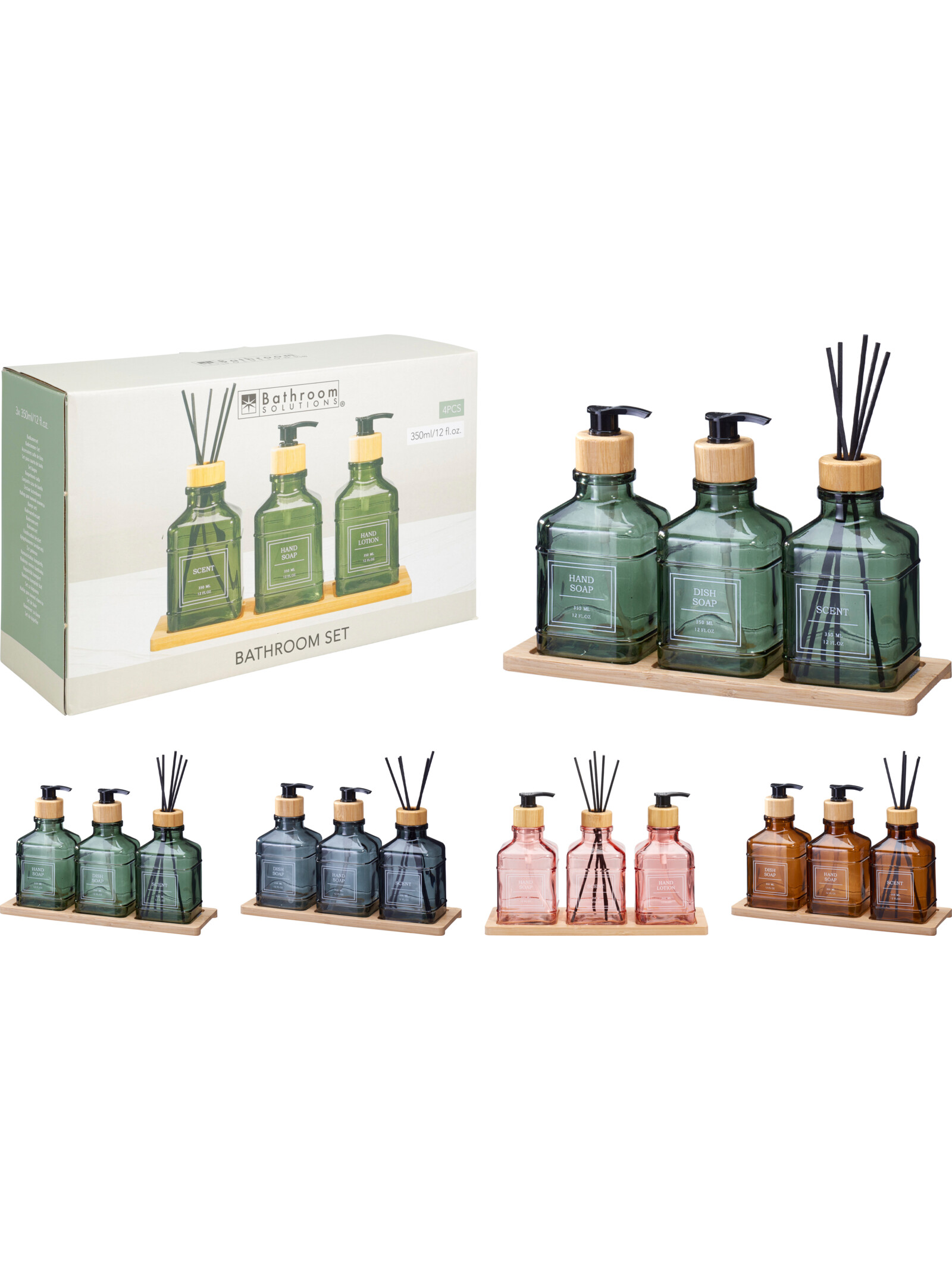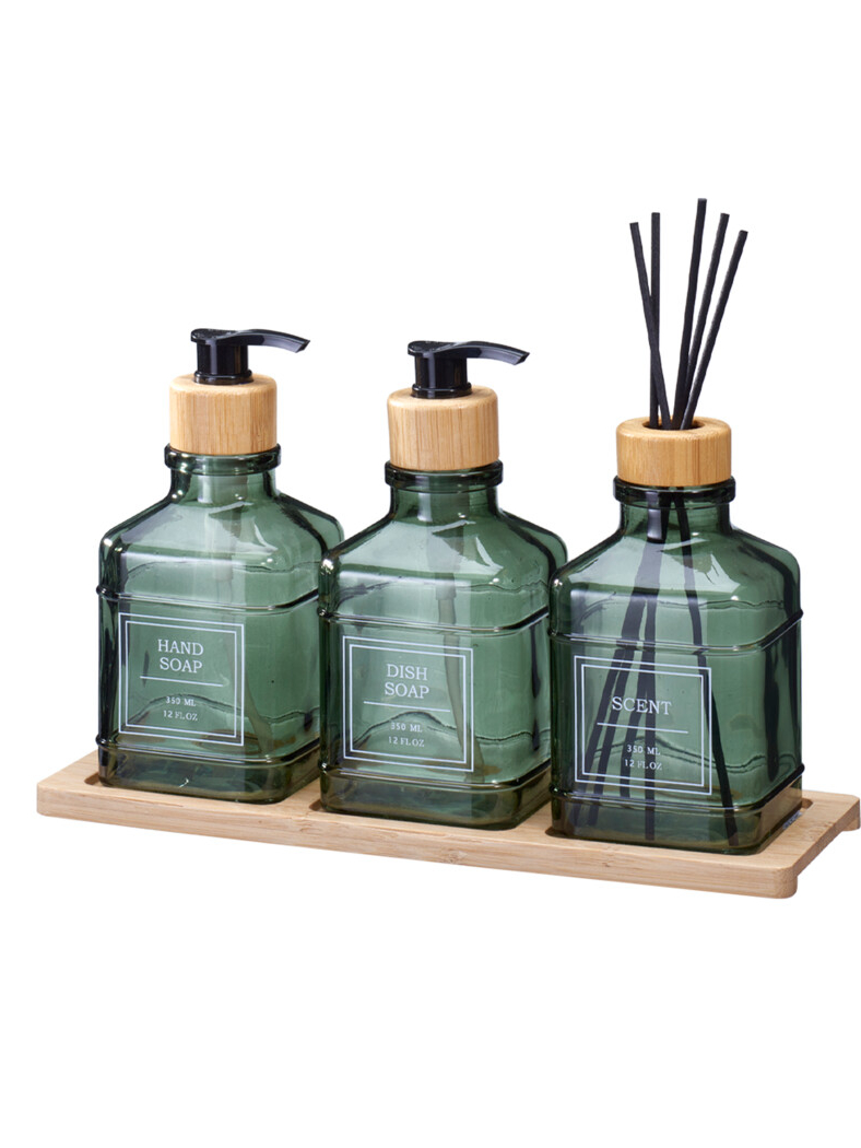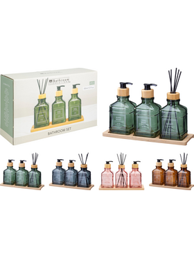 Σετ μπάνιου γυάλινο 3 τεμάχια σε 4 χρώματα