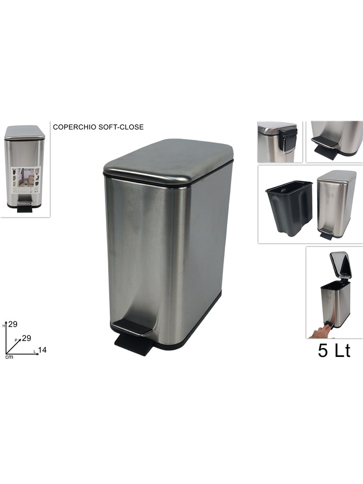 Κάδος σκουπιδιών με πεντάλ ατσάλινος σε ορθογώνιο σχήμα με χωρητικότητα 5 λίτρα