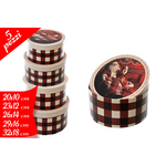Χριστουγεννιάτικο στρόγγυλο καρό κουτί αποθήκευσης με καθιστό Άγιο Βασίλη σετ 4τμχ