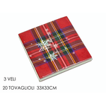 Χριστουγεννιάτικες καρό χαρτοπετσέτες 3φυλλες σε κόκκινο χρώμα σετ 20τμχ 33cm