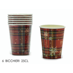 Χριστουγεννιάτικα χάρτινα ποτήρια καρό με χιονονιφάδες σετ 6τμχ 250ml