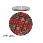 Χριστουγεννιάτικα χάρτινα πιάτα καρό με χιονονιφάδες σετ 6τμχ 23cm