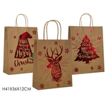 Χριστουγεννιάτικη σακούλα δώρου χάρτινη σε διάφορα χρώματα και σχέδια 38x12x48cm
