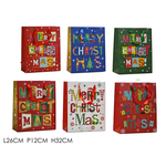 Χριστουγεννιάτικη σακούλα δώρου χάρτινη σε διάφορα χρώματα και σχέδια 26x12x32cm