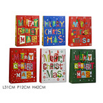 Χριστουγεννιάτικη σακούλα δώρου χάρτινη σε διάφορα χρώματα και σχέδια 31x12x42cm