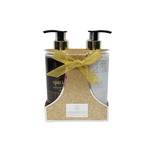 Χριστουγεννιάτικο σετ δώρου χρυσό/μαύρο με αφρόλουτρο, κρέμα σώματος, body scrub, άλατα μπάνιου και πετσέτα