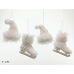 Χριστουγεννιάτικο παγοπέδιλο στολίδι με γούνα σε λευκό χρώμα 11cm