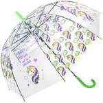Ομπρέλα 8 ακτίνων με ροζ μπαστούνι διάφανη με σχέδιο μονόκερο αυτόματη