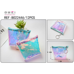 Πορτοφολάκι ιριδίζον με φερμουάρ και μπρελόκ με διαστάσεις 11x9,5 εκ