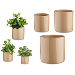 Σετ κεραμικές γλάστρες σε 3 μεγέθη σε κυλινδρικό σχήμα με ύψος 12x14cm, 15x17cm, 20x22cm σε καφέ χρώμα
