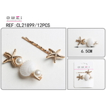 Σετ 2 τσιμπιδάκια για τα μαλλιά με μήκος 6,5εκ.με πέρλες και κοχύλια σε χρυσαφί χρώμα