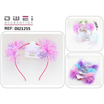 Στέκα μαλλιών με pon pon πολύχρωμα σε ροζ χρώμα