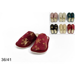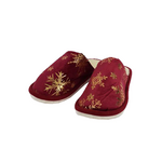 Χριστουγεννιάτικες βελούδινες παντόφλες σε μπορντώ χρώμα με χρυσές λεπτομέρειες