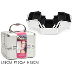 Βαλιτσάκι οργάνωσης μακιγιάζ μεταλλικό με βελούδινη επένδυση σε ασημί χρώμα 18x15x15cm