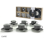 Σετ 6 φλυτζάνια τσαγιού με πιατάκια σε ασπρόμαυρο χρώμα με γεωμετρικά σχέδια σε κουτί