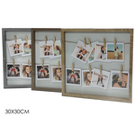 Κορνίζα φωτογραφιών ξύλινη με μανταλάκια σε μπεζ χρώμα 30x30cm