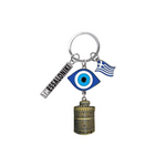 Μεταλλικό μπρελόκ σουβενίρ Λευκός Πύργος & μάτι σε ασημί χρώμα 10cm