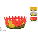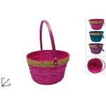 Καλάθι στρόγγυλο ψάθινο με χερούλι με πασχαλινές παραστάσεις με διάμετρο 24cm σε 3 χρώματα
