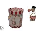Χριστουγεννιάτικο μεταλλικό κουτί κύλινδρος με καπάκι και χερούλι δερμάτινο 18.5x15x15cm