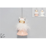 Χριστουγεννιάτικο στολίδι καμπανάκι αγγελάκι με πούπουλα σε ροζ χρώμα 10x6,5x6,5cm