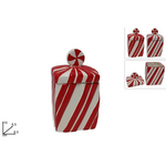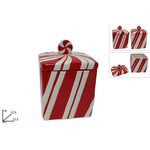 Χριστουγεννιάτικο βαζάκι με καπάκι από πορσελάνη σε κόκκινο χρώμα με άσπρες ρίγες 18x12,5x12,5cm