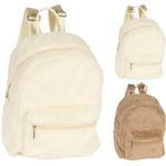 Σακίδιο πλάτης με βελούδινο ύφασμα με διαστάσεις 25x11x34cm σε εκρού χρώμα