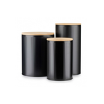 Δοχείο από ανοξείδωτο ατσάλι με καπάκι από μπαμπού σε μαύρο χρώμα 13,5x17,5cm