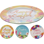 Πιατέλα στρόγγυλη πλαστική με διάμετρο 33cm με επιγραφή ~Happy Easter~ σε 3 σχέδια