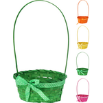Καλαθάκι στρόγγυλο ψάθινο με χερούλι σε 4 χρώματα