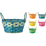 Καλαθάκι στρόγγυλο ψάθινο με διαστάσεις 17x9cm με 2 χερούλαι σε 5 χρώματα