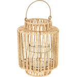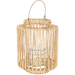 Διακοσμητικό φαναράκι μεταλλικό με λωρίδες από σπάγγο και γυάλινη θέση για ρεσώ στο εσωτερικό 25x19cm