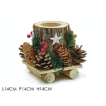 Χριστουγεννιάτικη διακοσμητική βάση για ρεσό με κορμό σε ξύλινη βάση 14x14x14cm