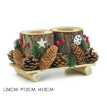 Χριστουγεννιάτικη διακοσμητική βάση για ρεσό με κορμό σε ξύλινη βάση με 2 θέσεις 24x12x13cm