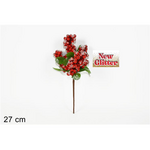 Χριστουγεννιάτικο διακοσμητικό κλαδί με κόκκινα μούρα και γκλίτερ 27cm