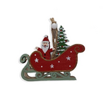 Χριστουγεννιάτικο ξύλινο στολίδι με Άγιο Βασίλη σε έλκηθρο σε κόκκινο χρώμα 8x2x6cm