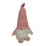 Χριστουγεννιάτικος διακοσμητικός νάνος με βελουτέ κόκκινο σκούφο σε ροζ χρώμα 20x12x42cm