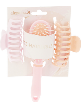 Σετ 3 τεμάχια βούρτσα μαλλιών και δύο κλάμερ σε ροζ χρώμα