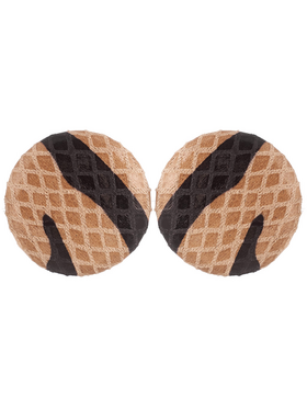 Σκουλαρίκια κλίπ στρογγυλά με ανάγλυφο σχέδιο από ύφασμα, μήκους 3cm, σε χρώμα μαύρο/μπεζ