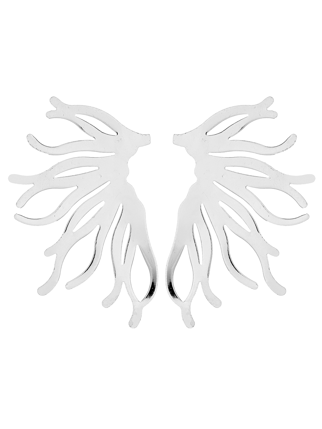 Σκουλαρίκια μεταλλικά με σχέδιο κοράλλι μήκους 6.5cm σε χρώμα ασημί