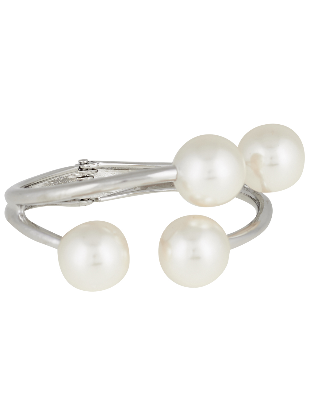 Βραχιόλι μεταλλικό, χειροπέδα ανοιγόμενη με πέρλες στο κλείσιμο σε χρώμα ασημί