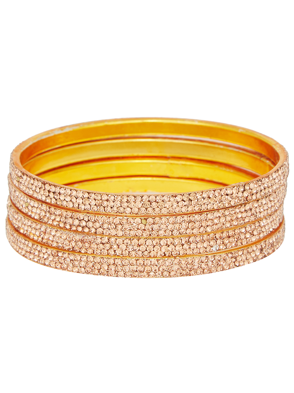 Βραχιόλια σταθερά σετ των 4τμχ από μέταλλο και στράς σε χρώμα ροζ χρυσό