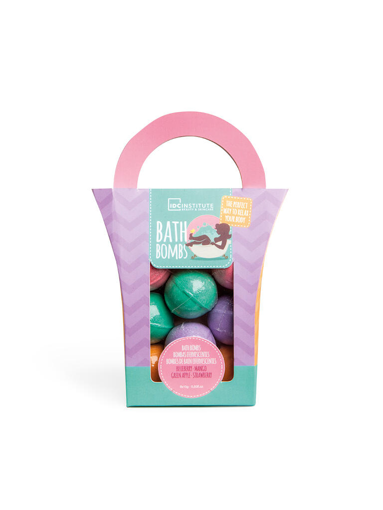 IDC Bath Fizzer – μπάλες οξυγόνου που χαρίζουν στο σώμα και το πνεύμα σας αναζωογόνηση και χαλάρωση. (Blueberry – Mango – Strawberry – Green Apple). Διατίθεται σε χάρτινη συσκευασία τσαντάκι που περιέχει 8x 15gr προϊόντος.