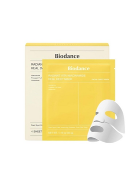 Η Biodance Radiant Vita Niacinamide Real Deep Mask είναι μια εξαιρετικά συμπυκνωμένη μάσκα προσώπου τύπου gel που εξομαλύνει τον τόνο του δέρματος και αποκτά υγιές, λαμπερό δέρμα.