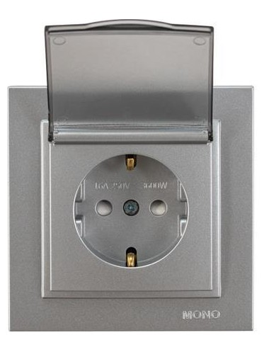 Πριζα Σουκο Καπακι 16a Κουμπωτος με Παιδικη Προστασια Ασημι