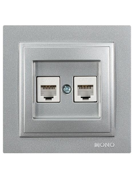 Πριζα Τηλεφωνου Διπλη rj 11 Ασημι