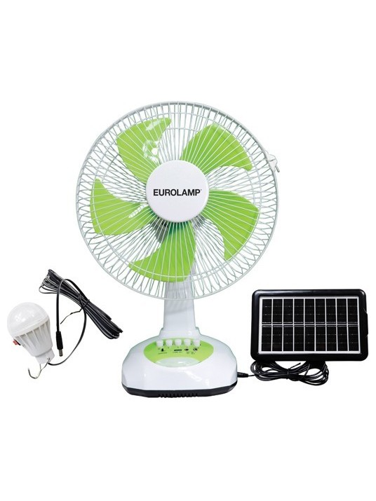 Ανεμιστηρας Επιτραπεζιος Λευκο-Πρασινο Φ34.5 10w Επαναφορτιζομενος με Ηλιακο Πανελ και Λαμπα