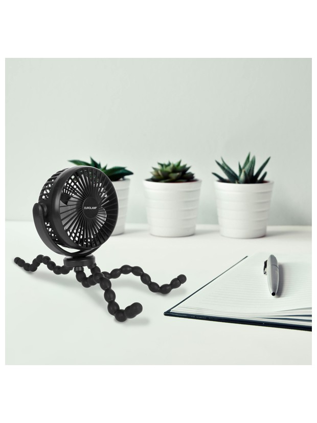 Ανεμιστηρας Γραφειου Μαυρος φ12 5w Ευκαμπτο Τριποδο Επαναφορτιζομενος