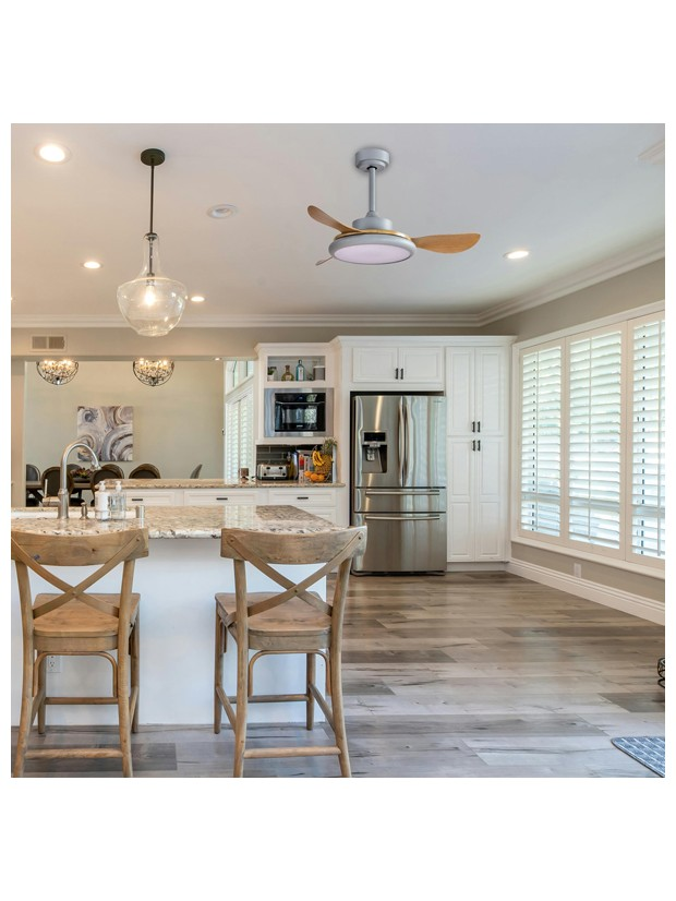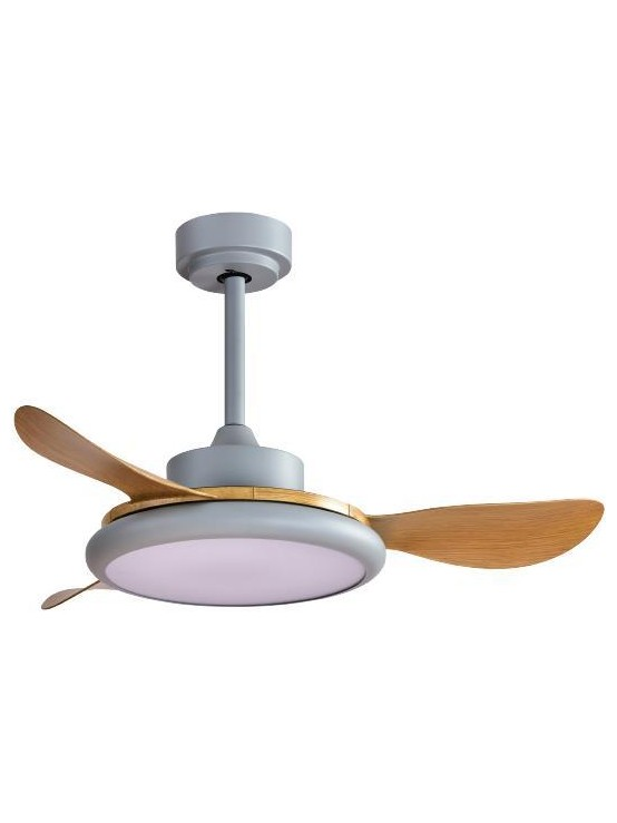 Ανεμιστηρας Οροφης Γκρι και Ξυλο με led φωσ και Κοντρολ Φ107 dc 35w