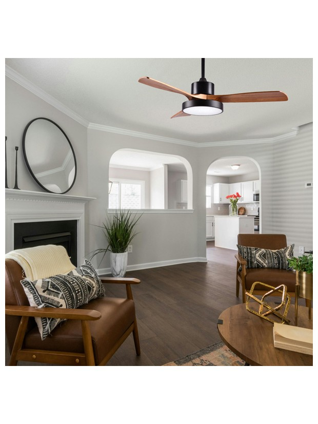 Ανεμιστηρας Οροφης Μαυρο και Ξυλο με led φωσ και Κοντρολ Φ122 dc 35w