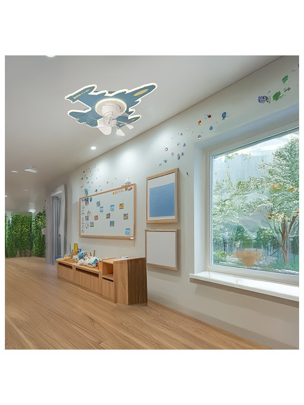 Ανεμιστηρας Οροφης Παιδικος Αεροπλανο Μπλε 24w με led φωσ 63w και Κοντρολ